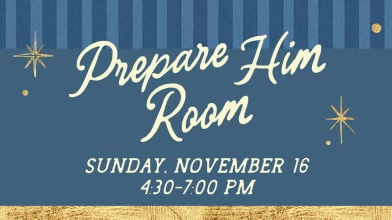 Join us TONIGHT from 4:30–7:00 p.m. in the Gym for an evening of worship, fellowship, and reflection as the women of Harpeth Heights prepare their hearts for the season. Hear from Bible teacher Kelly Minter and enjoy holiday hors d’oeuvres, desserts, and childcare for those who register. Come celebrate the true meaning of Christmas as we Prepare Him Room!