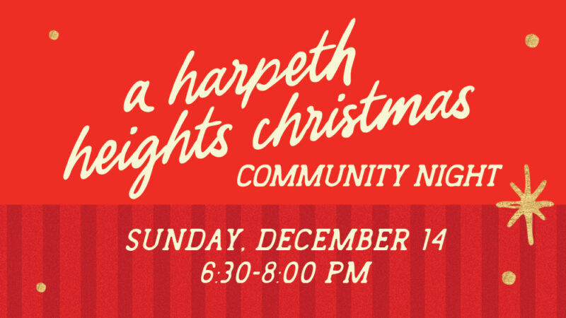Join us next Sunday, December 14, from 6:30–8:00 p.m. for A Harpeth Heights Christmas: Community Night! This free event is open to our church family and community, featuring cookie and ornament decorating, inflatables, hot chocolate, live nativity animals, a train ride, and more. Activity stations will be located inside the building, while the animals and train ride will be outside. Come celebrate the hope of Christmas with us—invite your friends and neighbors!